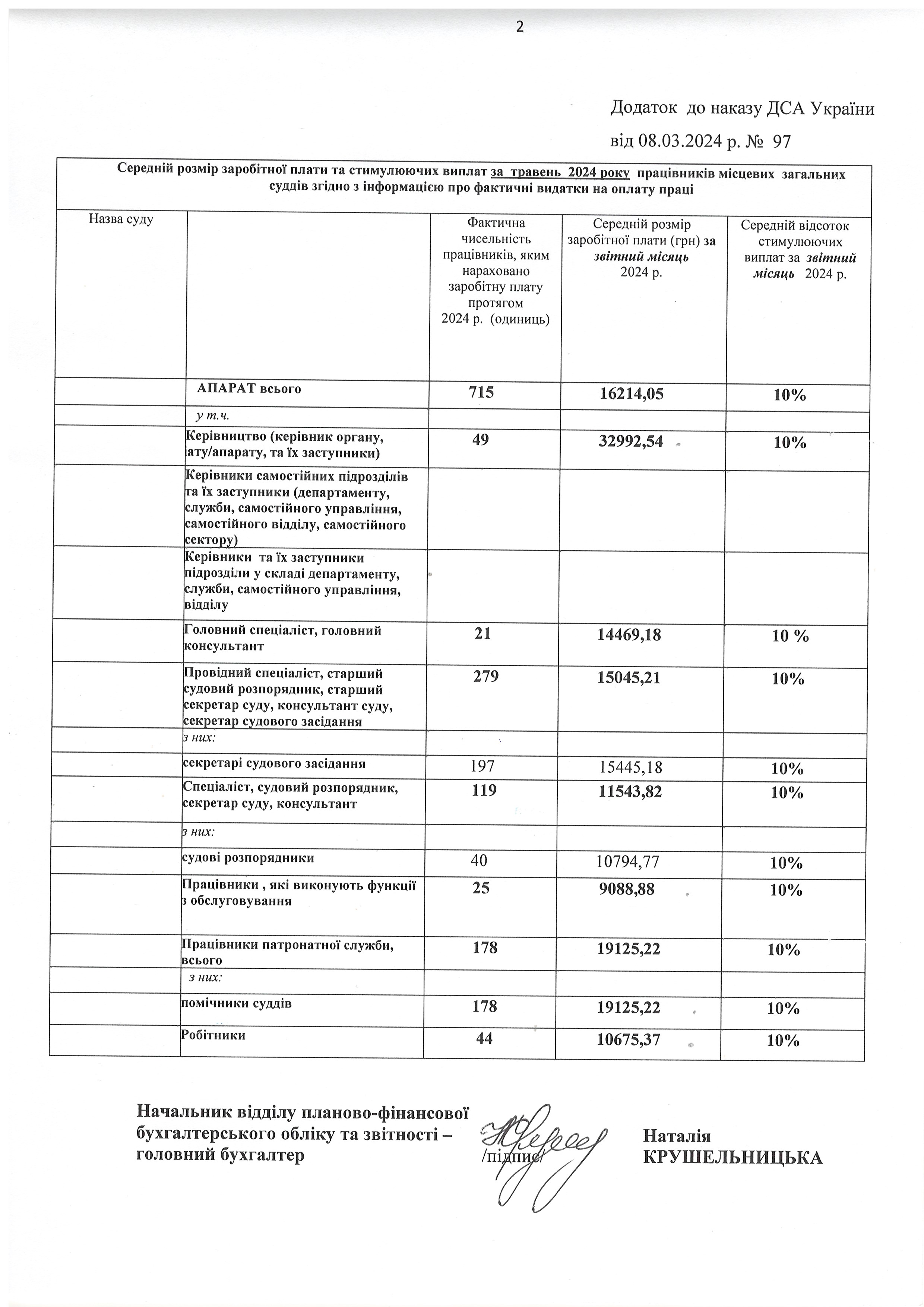 Середній розмір заробітної плати та стимулюючих виплат працівників апаратів судів