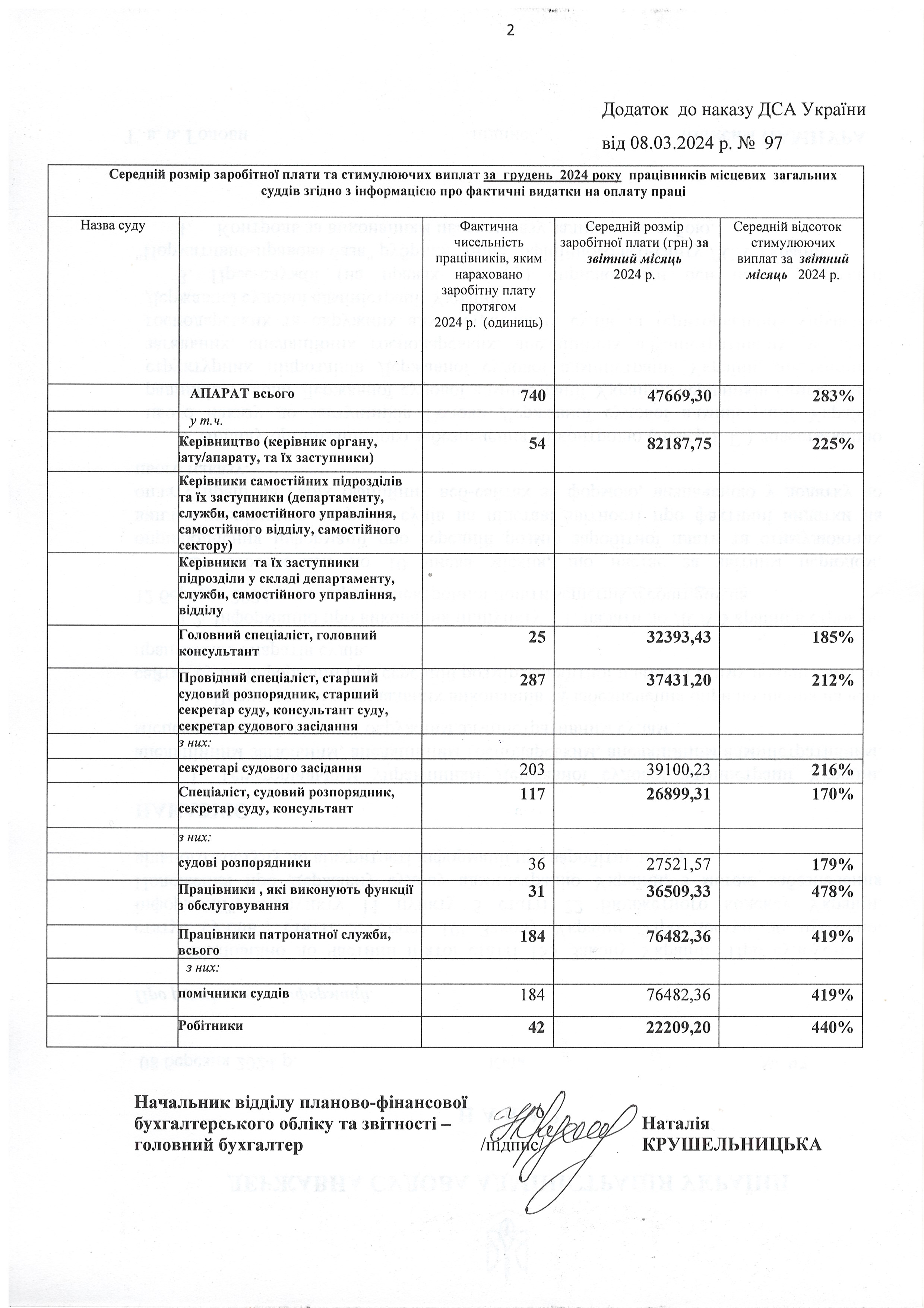 Середній розмір заробітної плати та стимулюючих виплат працівників апаратів судів
