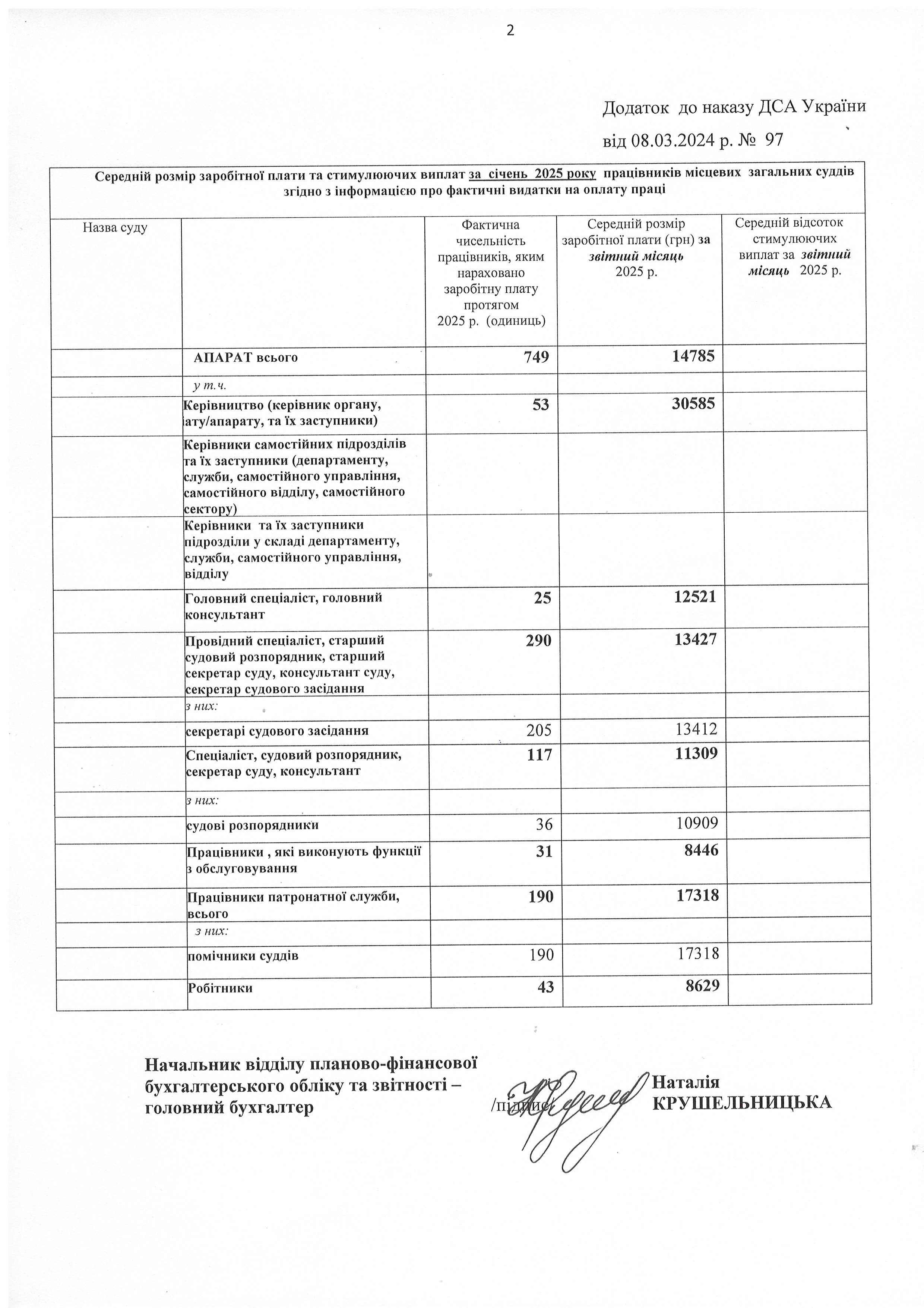 Середній розмір заробітної плати та стимулюючих виплат працівників апаратів судів