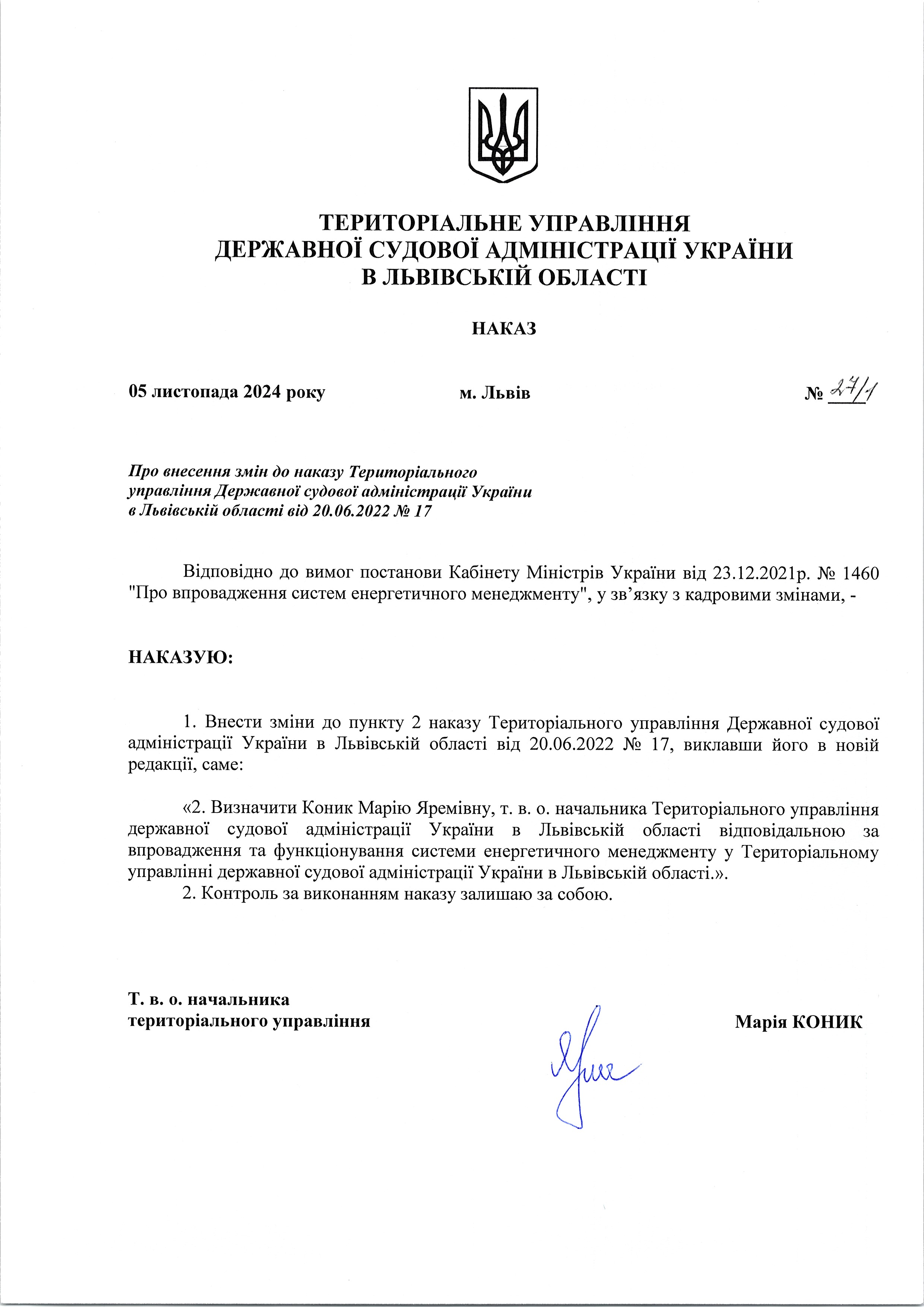 Наказ 27/1 Про внесення змін до наказу №17 від 20 червня 2022 року