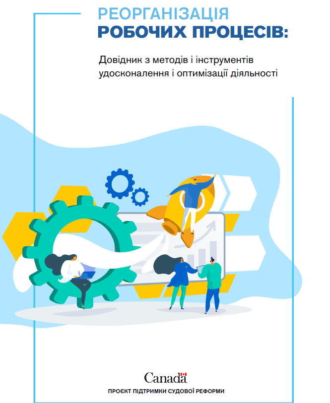 Посібник підготовлено в рамках співпраці Державної судової адміністрації України з українсько- канадським Проєктом підтримки судової реформи на основі канадського досвіду реорганізації бізнес- процесів та результатів заходів ДСА України зі спрощення робочих процесів (тренінгів, засідань робочих груп, пілотного проєкту), що відбулися протягом 2018- 2020 років за участю канадських експертів.