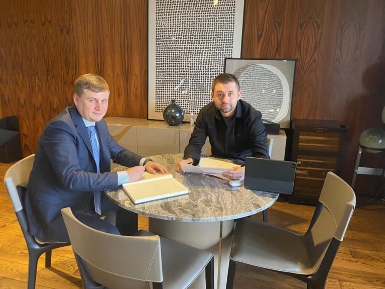 Народний депутат України, Голова депутатської фракції політичної партії "Слуга народу" Давид Арахамія наголосив на всебічній підтримці роботи Державної судової адміністрації України в напрямку забезпечення належного фінансового забезпечення діяльності органів судової влади під час робочої зустрічі із заступником Голови ДСА України Олексієм Сальніковим 24 березня 2021 року.