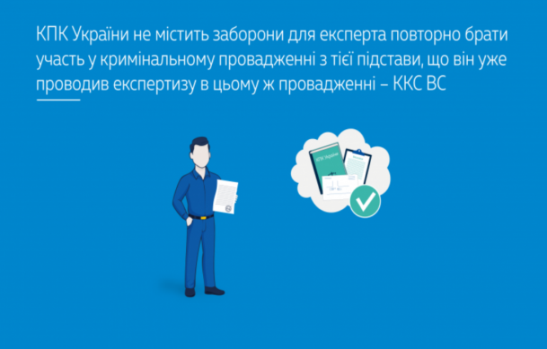 КПК України не містить заборони для експерта повторно брати участь у кримінальному провадженні з тієї підстави, що він уже проводив експертизу в цьому ж провадженні – ККС ВС