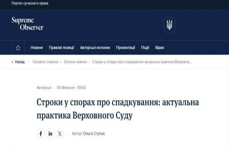 Детальніше читайте у статті, розміщеній на порталі Supreme Observer – https://so.supreme.court.gov.ua/authors/1553/stroky-u-sporakh-pro-spadkuvannia-aktualna-praktyka-verkhovnoho-sudu.