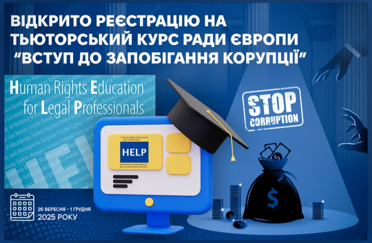 Запрошуємо суддів та помічників суддів взяти участь в тьюторському курсі Ради Європи HELP "Вступ до запобігання корупції".
