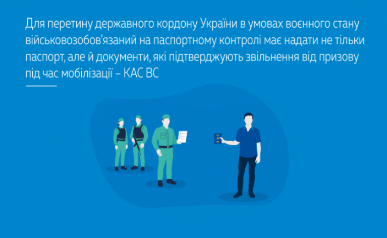 Для перетину державного кордону України в умовах воєнного стану військовозобов’язаний на паспортному контролі має надати не тільки паспорт, але й документи, які підтверджують звільнення від призову під час мобілізації – КАС ВС