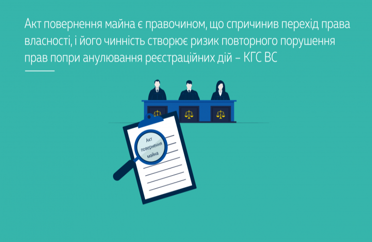 Так званий «акт повернення майна» за своєю суттю є актом приймання-передачі. Залежно від обставин такий документ може одночасно бути первинним бухгалтерським документом і двостороннім правочином, який породжує цивільно-правові наслідки. Тому під час визначення його правової природи судам необхідно досліджувати зміст акта, волевиявлення сторін та фактичні наслідки його виконання.