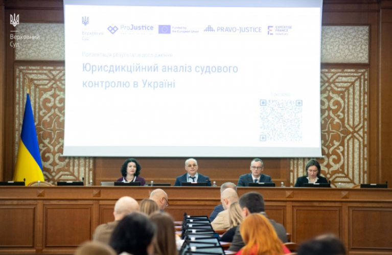 У Касаційному цивільному суді у складі Верховного Суду 9 березня 2026 року відбувся круглий стіл, на якому презентовано результати дослідження «Юрисдикційний аналіз судового контролю в Україні», підготовленого Громадською організацією «Міжрегіональний експертний центр "Pro Justice"» за підтримки проєкту Європейського Союзу «Pravo-Justice».