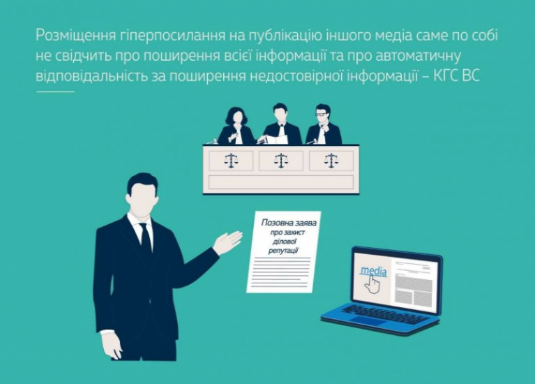 Переглядаючи справу, КГС ВС звернув увагу, що сам по собі факт розміщення гіперпосилання не означає взяття на себе відповідальності за повний зміст публікації третьої особи.