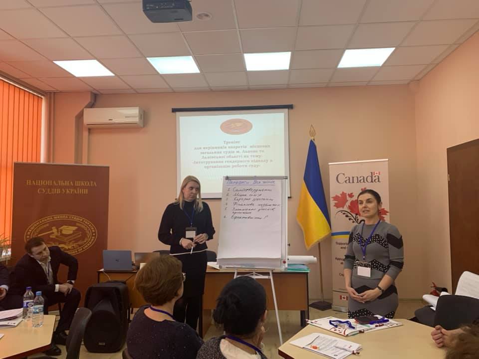 7 лютого 2020 року відбувся тренінг з інтегрування гендерного підходу в організацію роботи суду для керівників апаратів місцевих загальних судів м. Львова та Львівської області, організований та проведений українсько-канадським Проєктом підтримки судової реформи у співпраці з Територіальним управлінням Державної судової адміністрації України в Львівській області на базі Львівського регіонального відділення Національної школи суддів України.