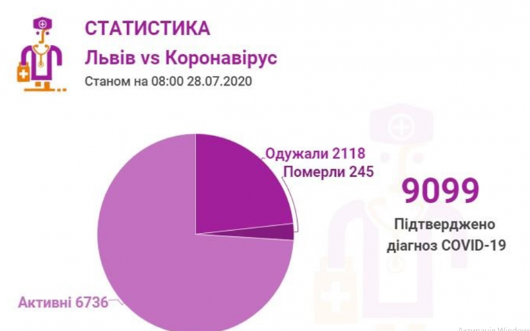 Станом на 28 липня у Львові та Львівській області загалом коронавірусну інфекцію виявлено— у 9099 осіб, 245 людей померло. 2118 пацієнтів одужало.