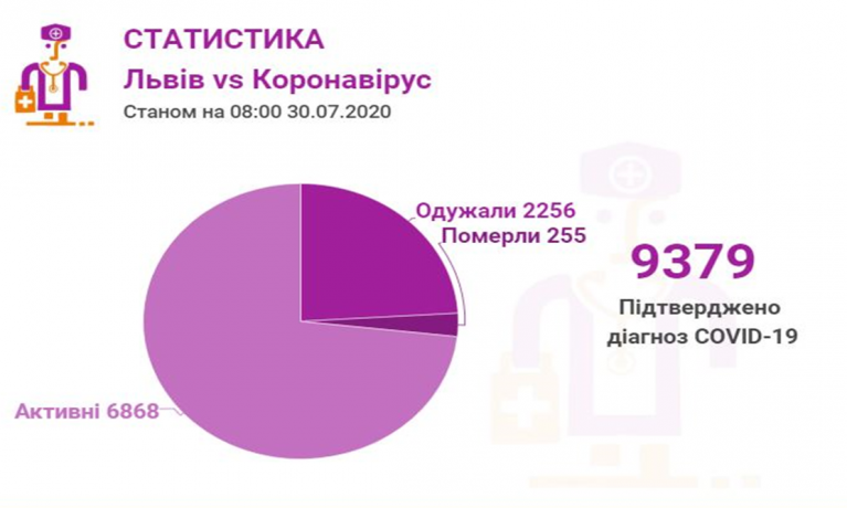 Станом на 30 липня у Львові та Львівській області загалом коронавірусну інфекцію виявлено— у 9379 осіб, 255 людей померло. 2256 пацієнтів одужало.